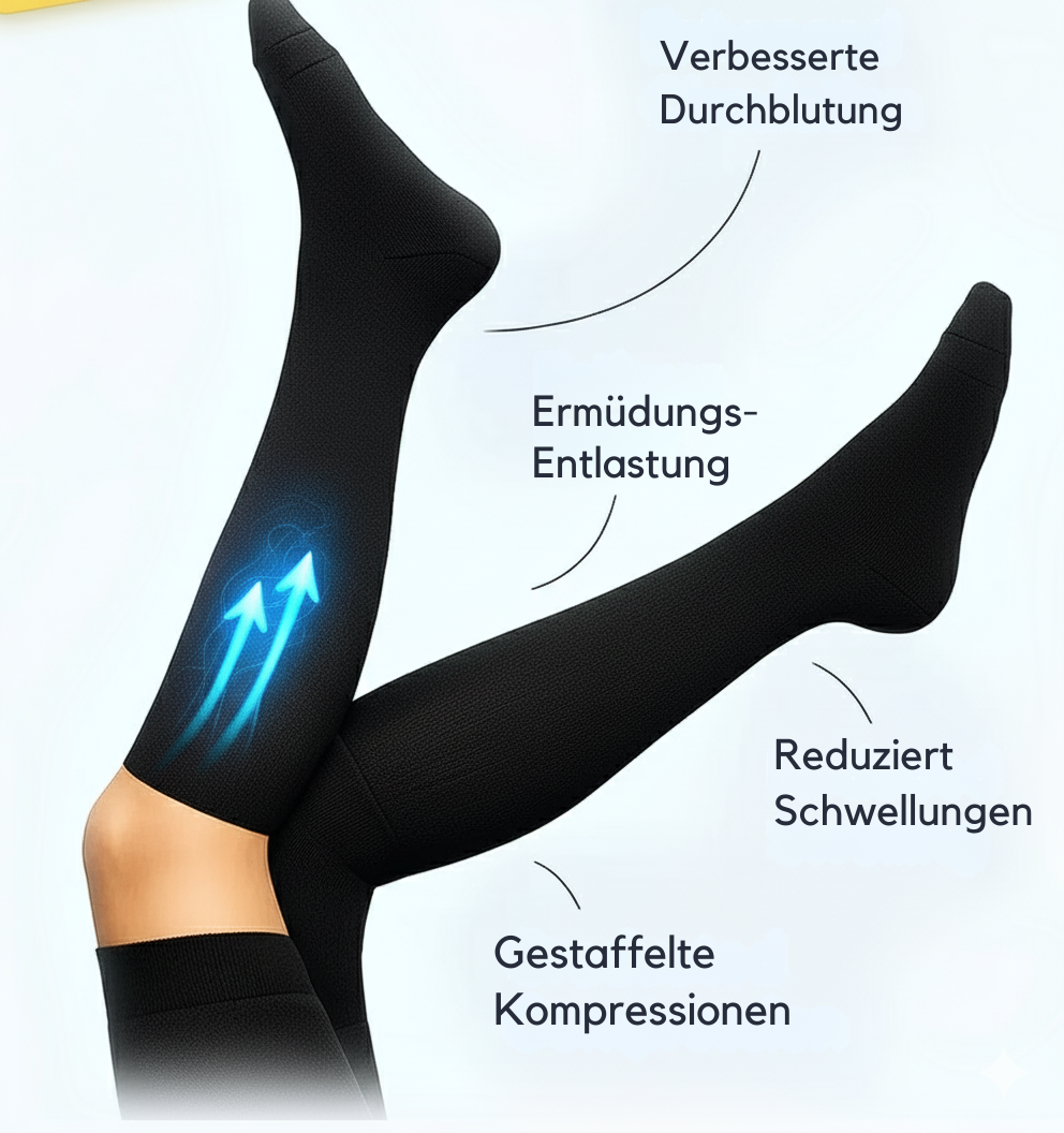 Unsere Kompressionsstrümpfe für Schwangere wurden entwickelt, um Frauen zu helfen, die mit den „Symptomen” von Blut- und Lymphansammlungen in den Beinen zu kämpfen haben.