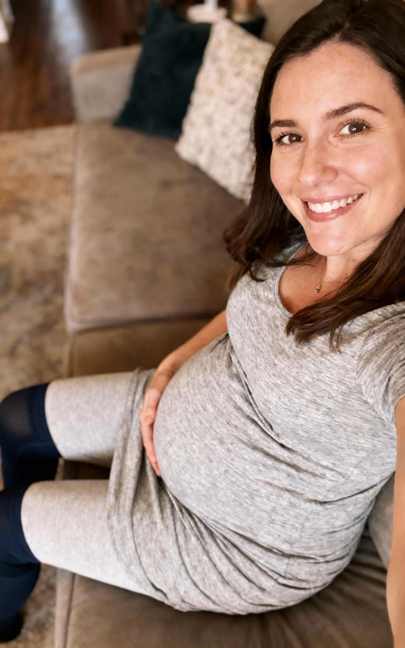 unserer Kundinnen im dritten Trimester ziehen sie problemlos selbst an.